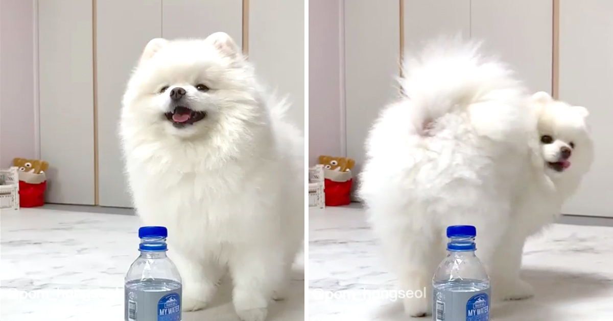 史上最療癒瓶蓋挑戰!小博美「呆萌轉圈」沒踢倒 下秒出大絕:快誇我~