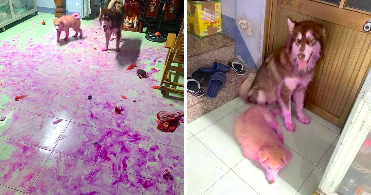 調皮二汪用火龍果「幫地板重新打蠟」 主人理智線全斷:該清蒸還紅燒?
