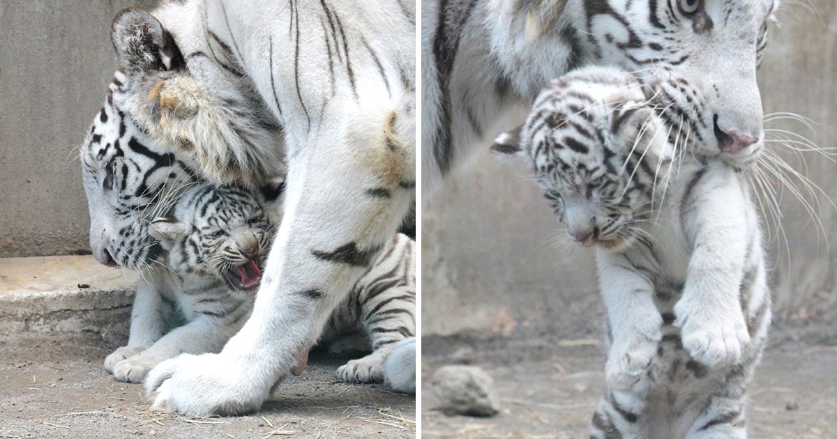 倫家還想玩!調皮小白虎被媽叼後頸 秒從「氣噗噗→生無可戀」網笑翻