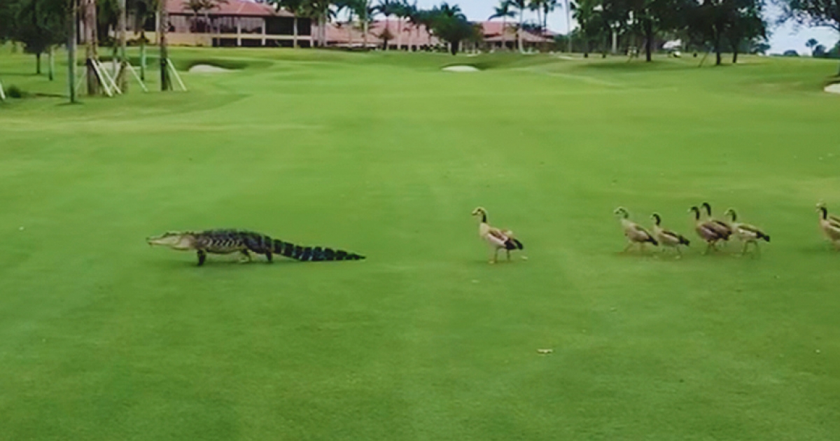 不怕被吃掉!憤怒鴨展示「團結力量」 一路尾隨趕走大鱷魚
