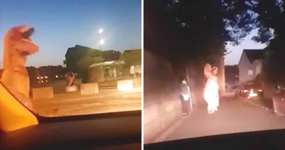 呆萌「恐龍」看到警察車馬上搖晃狂奔 員警笑歪:這畫面不能只有我看到