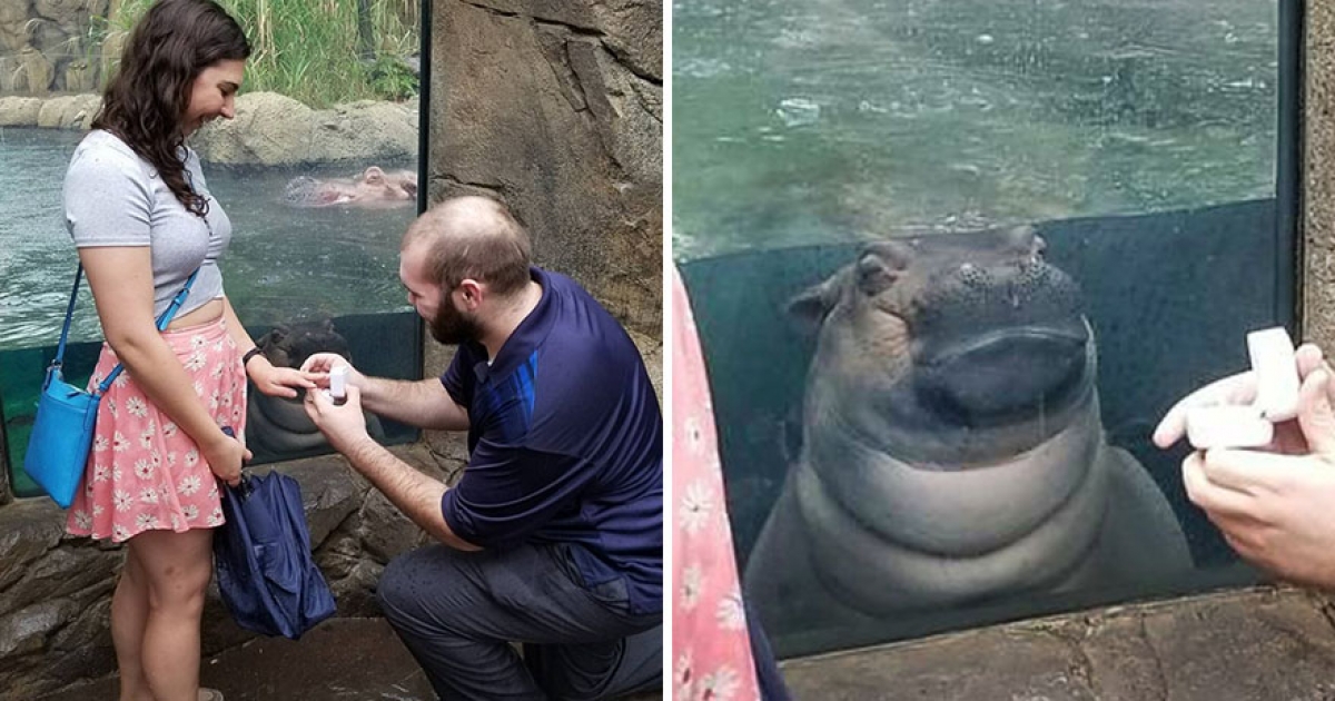 小河馬目睹求婚一幕「眼神充滿怨念」 網笑:確定牠還單身~