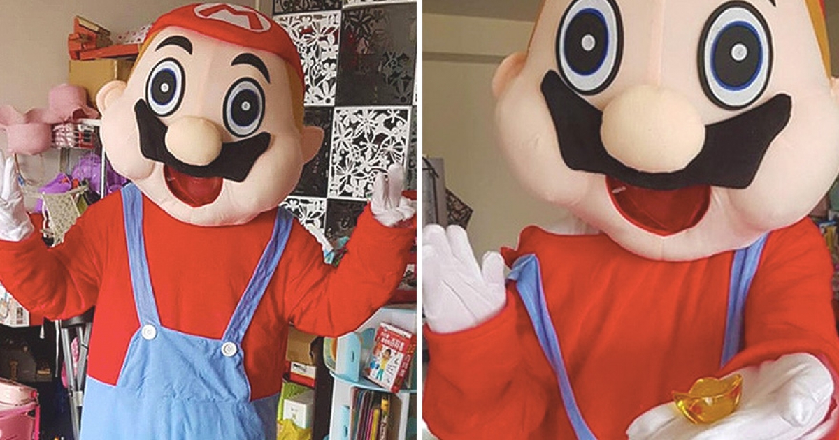 網購瑪莉歐服裝卻收到「長歪版」 一穿上去害網友大笑:是財神爺嗎?