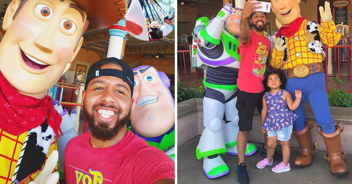 鐵粉老爸興奮過頭跟「玩具總動員」自拍 女兒傻眼望:人家也想入鏡啊
