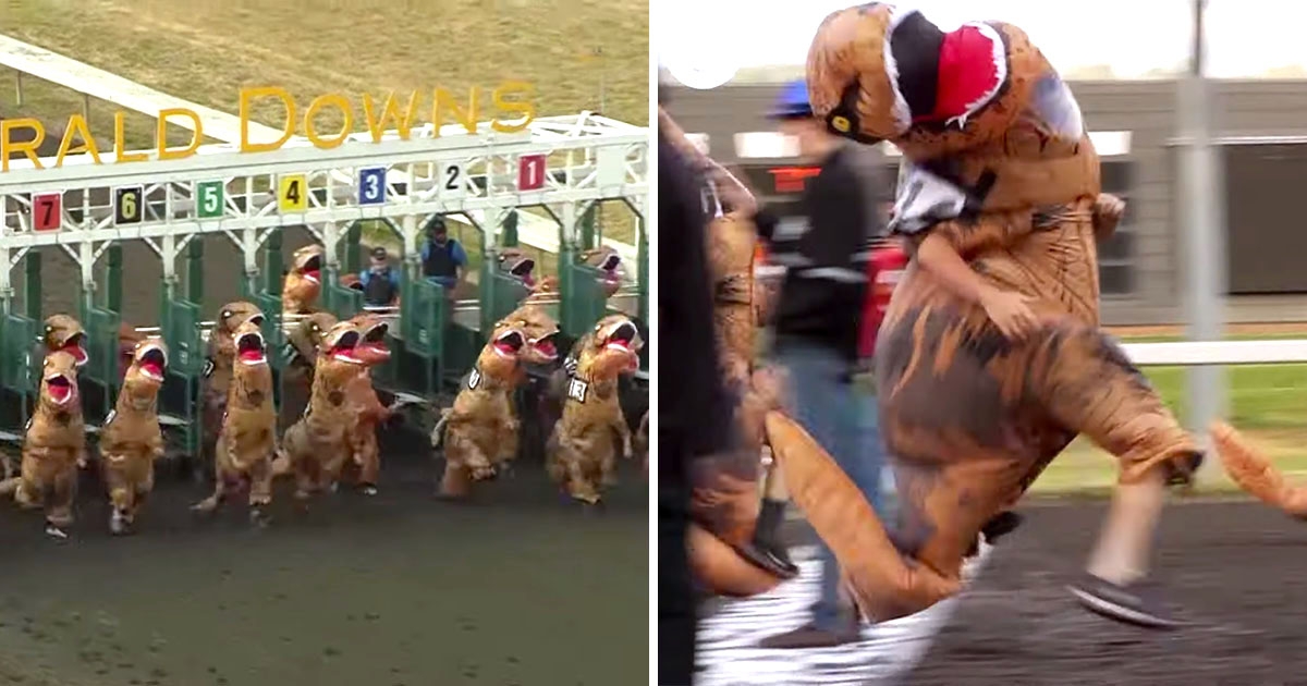 侏羅紀再現?恐龍賽跑集體歪頭 「群龍亂舞」笑到猛按重播