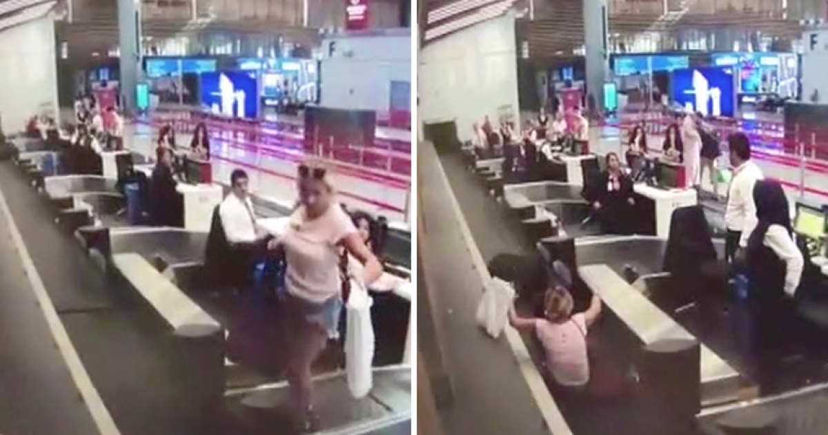第一次搭飛機「誤認行李輸送帶是入口」 女子「跌坐過程」監視器全拍下