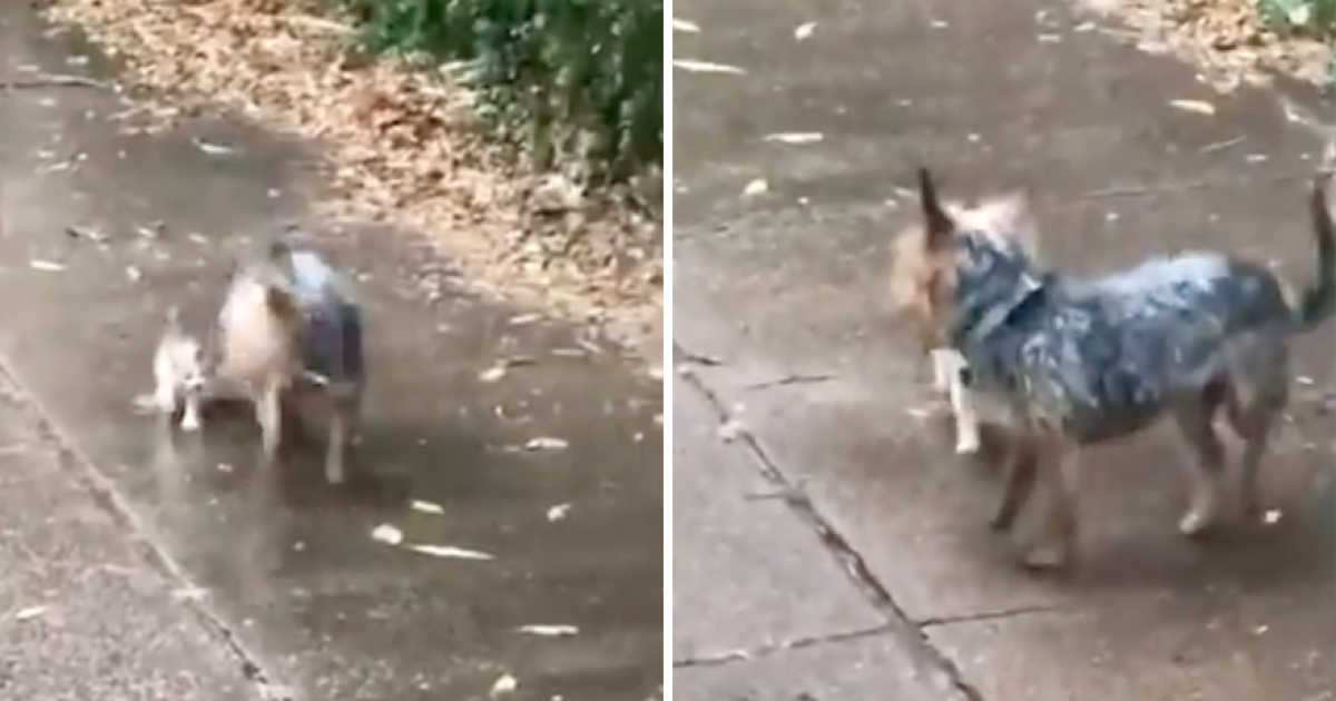 下大雨浪喵無處可去! 暖心汪看了「直推牠」舉動超暖:去我們家吧♡