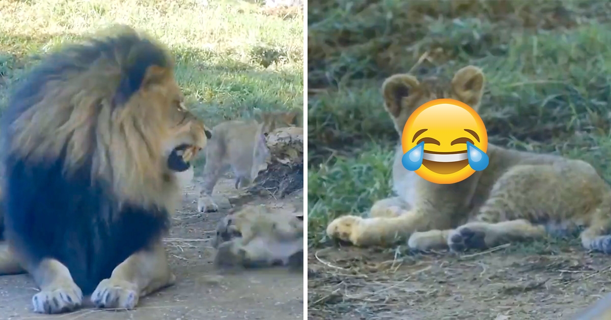 小奶獅糾纏雄獅被吼! 「驚嚇綜藝摔」旁邊手足冷笑:惹爸爸生氣了吧~