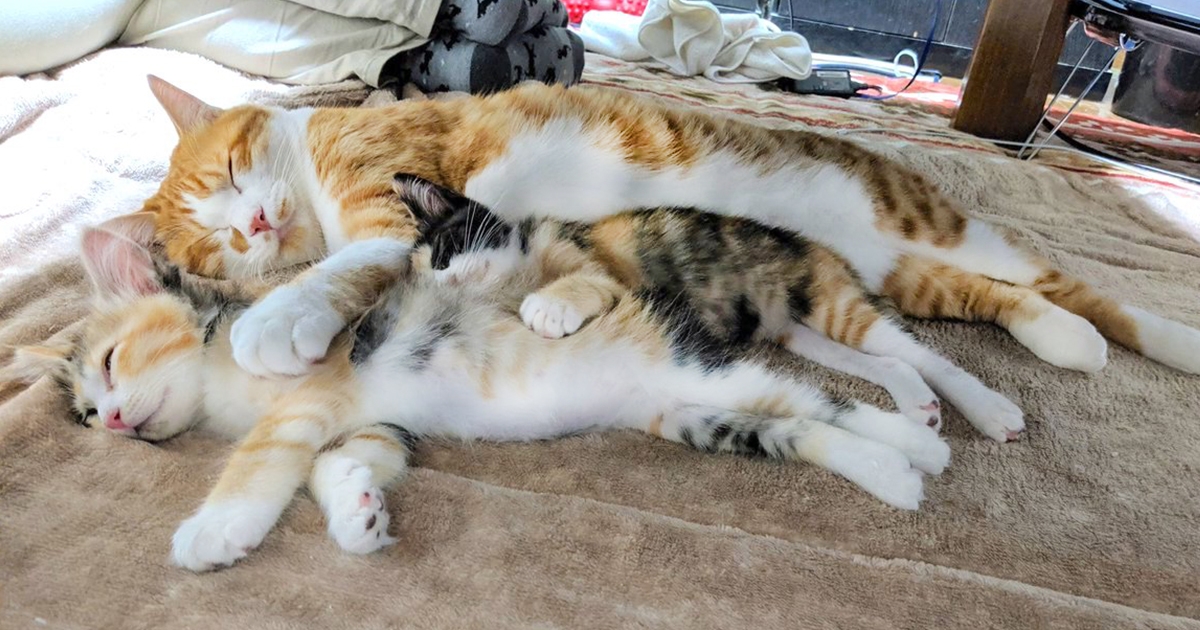 家裡貓相親相愛躺成「川字」甜睡 養貓大戶跟著曬:我家的還會抱抱❤