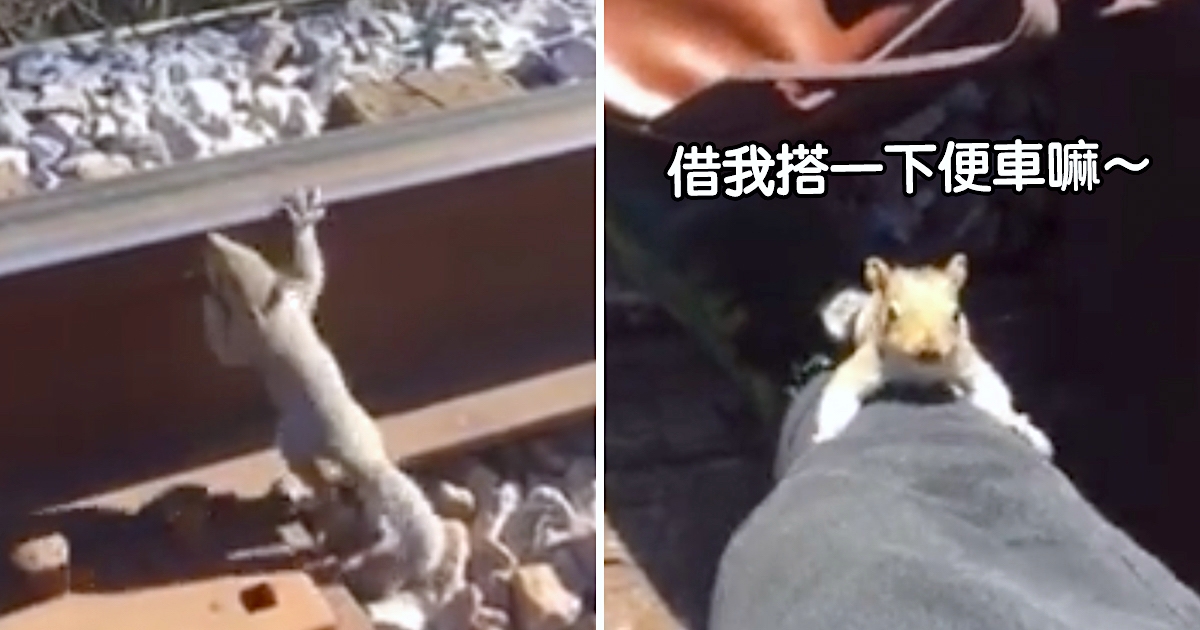 小松鼠跳不過鐵軌很慌 遇到好心人「超懂抱大腿」:拜託載我~