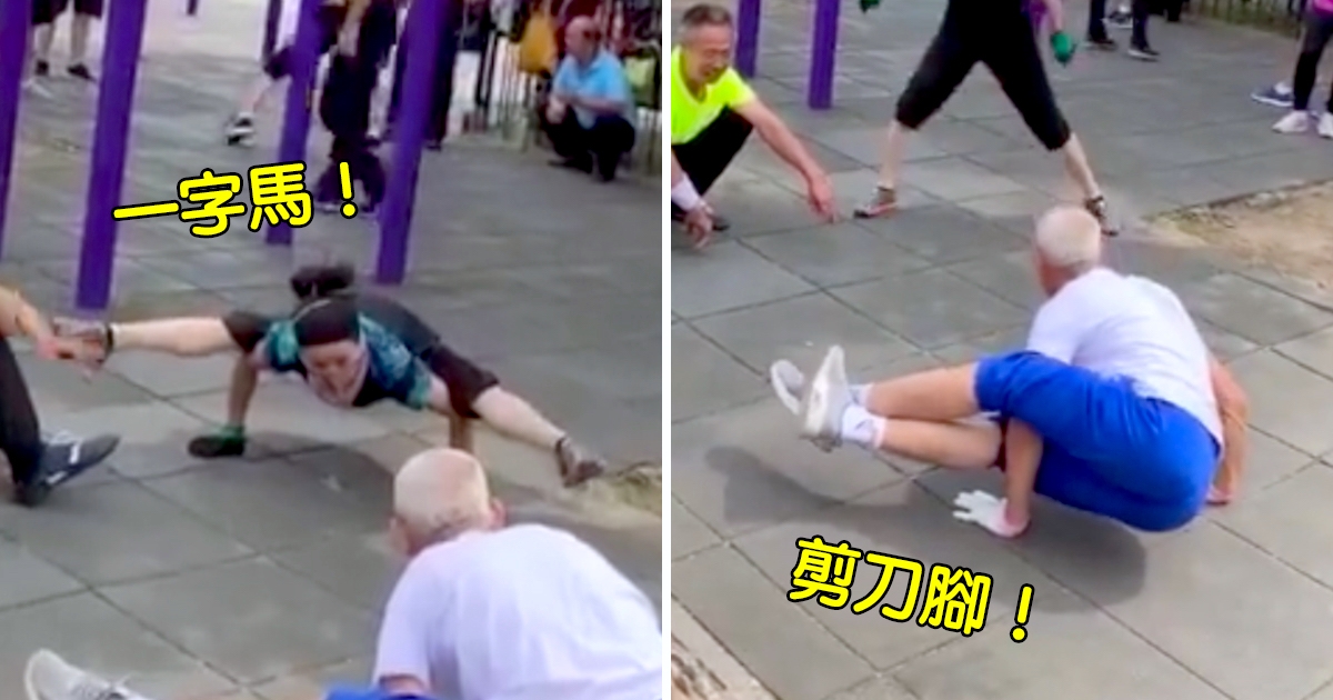 公園臥虎藏龍!大媽神臂力「凌空一字馬」 超強伯伯剪刀腳PK