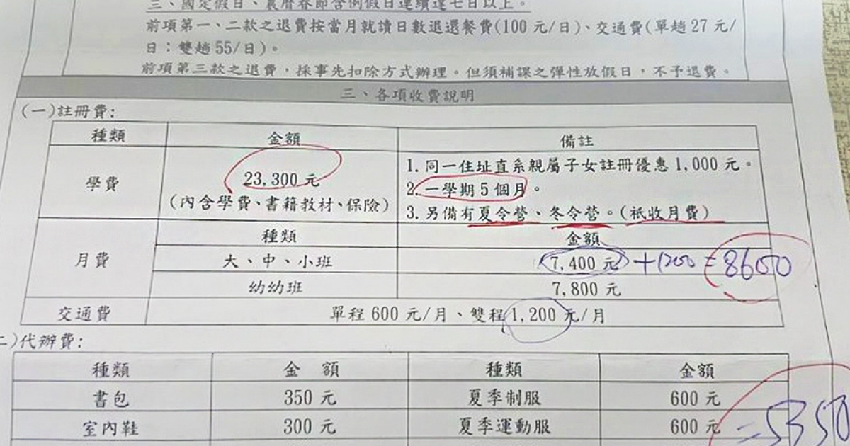新手爸看幼兒園學費單「一年15萬」嚇愣 年輕網友嘆:誰敢生啊?