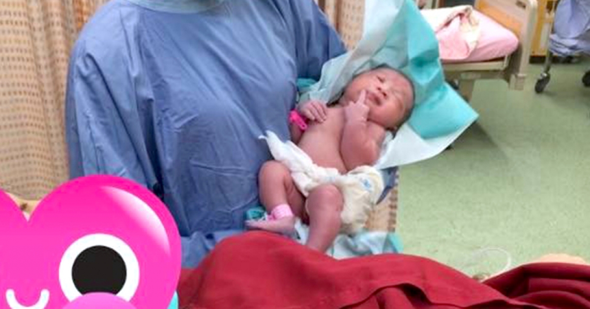 新生女兒很派!初見面就「手勢嗆老爸」 網友狂笑:霸氣滿滿