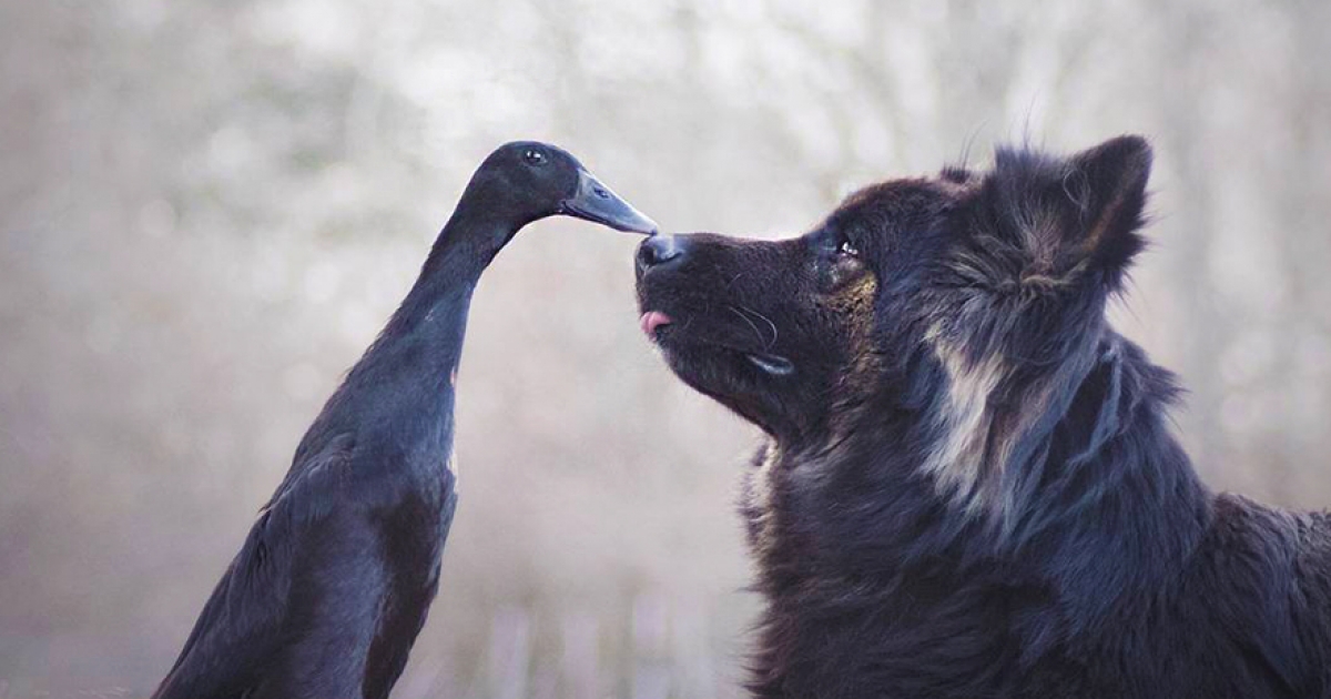 呆萌犬每天跟小黑鴨「甜蜜散步」感情超好 網淚:動物都比我幸福