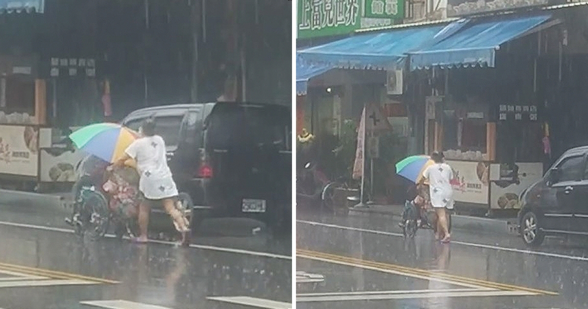 最暖心看護! 暴雨中讓大傘給長者 一路上推輪椅守護感動全網