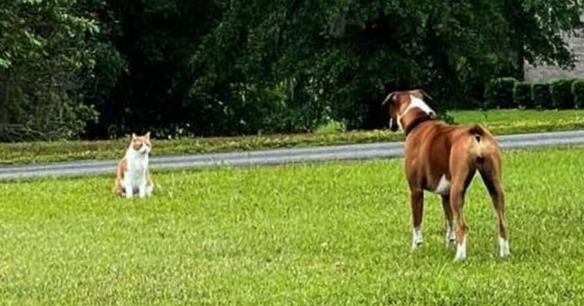 貓貓真的好囂張!發現「隱形圍欄」妙用 坐對面嘲弄狗狗:過來打我呀~