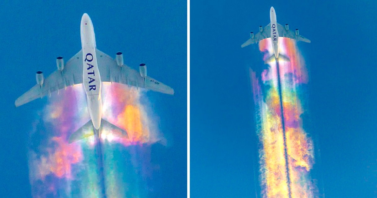 零修圖!攝影師拍到飛機「彩虹尾巴」 專家解釋成因:能看到不容易