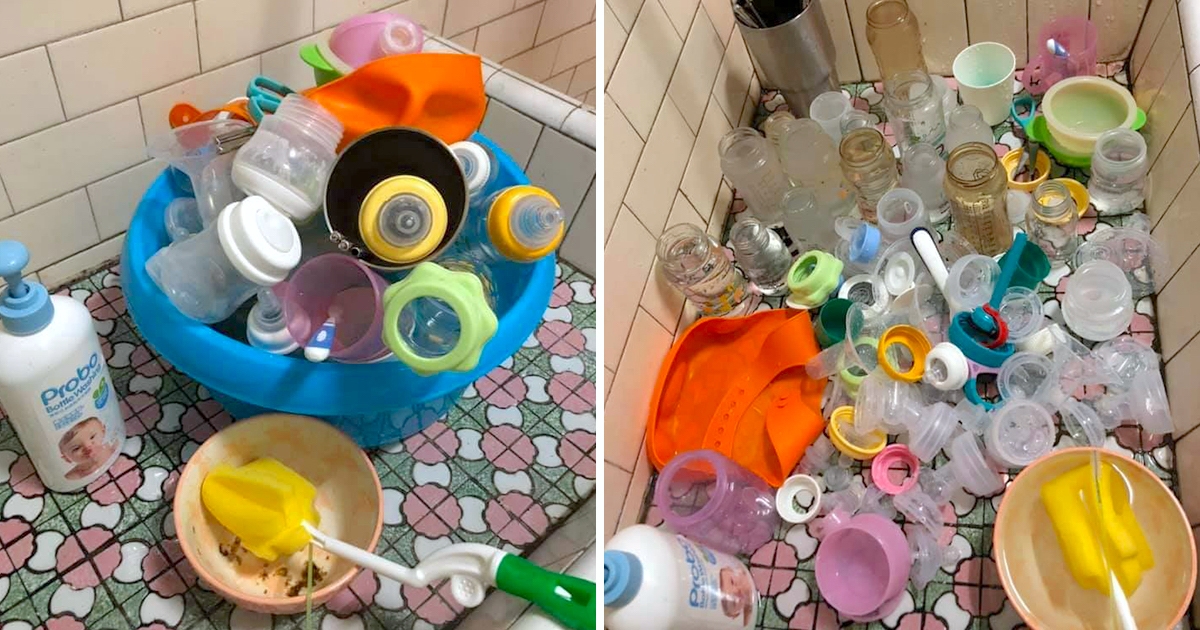 二寶爸曬「奶瓶海」洗到懷疑人生 網震撼:你家開托嬰中心?