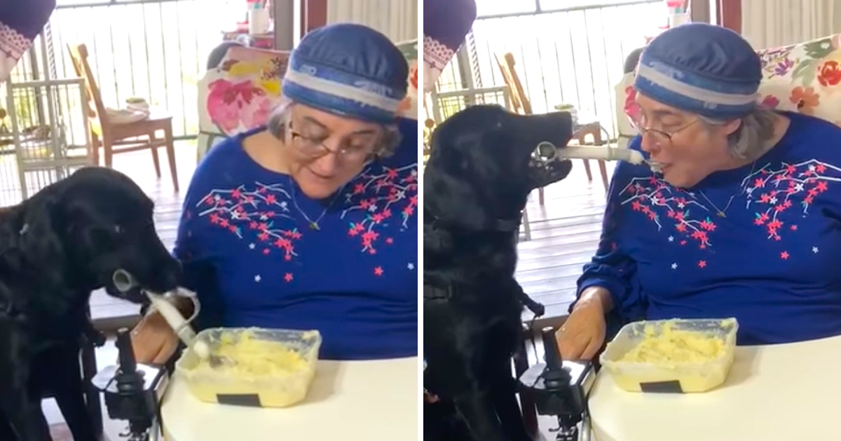 最孝順囝仔!服務犬餵四肢癱瘓主人吃飯 「一口一口超有耐心」網狂誇:好乖~