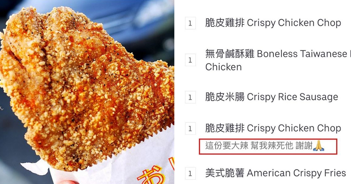 同事訂雞排備註「幫我辣X他謝謝」 神店員妙回5字…他笑瘋:下次還要訂!