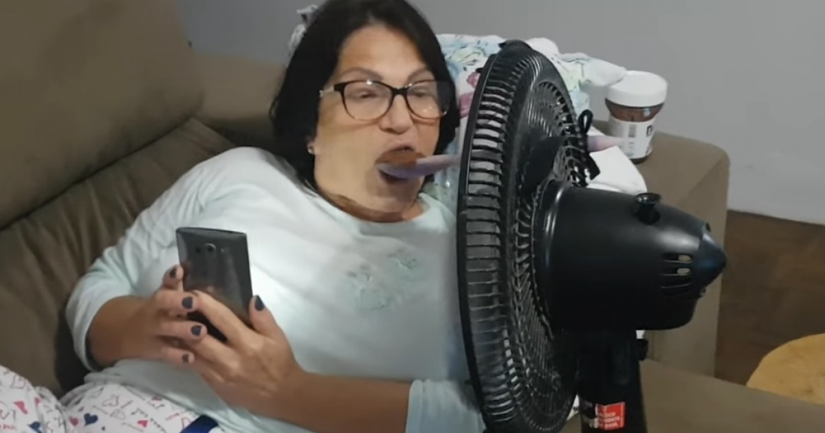 比懶惰誰能贏她? 媽躺沙發玩手機「讓電風扇餵她吃巧克力醬」