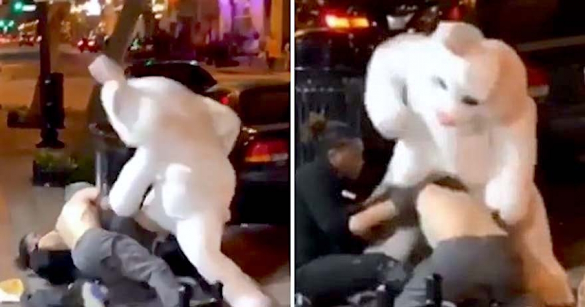街頭男女開打!正義復活兔「出拳揍翻男方」 網笑瘋:畫面太喜感