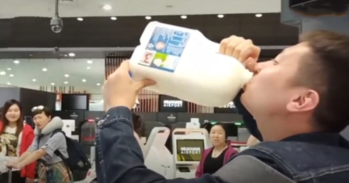 陸男遊澳帶2.5公升牛奶搭機 被攔下「悶聲一口氣灌完」路人都看呆