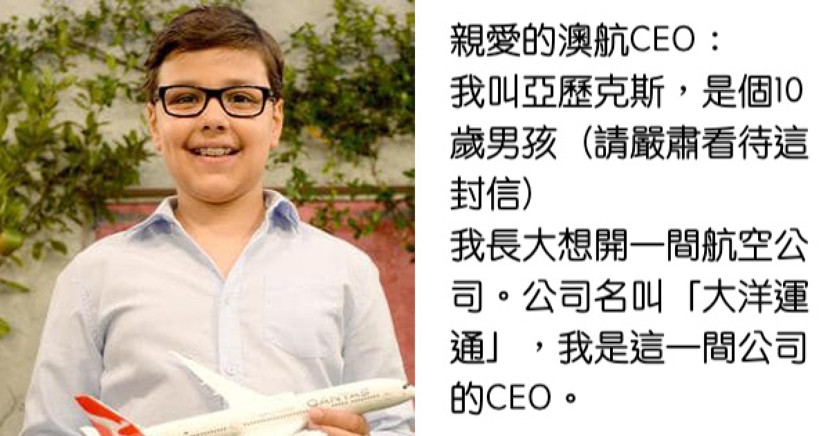 10歲男孩來信問「怎麼開航空公司?」 CEO超認真回應網一致讚好