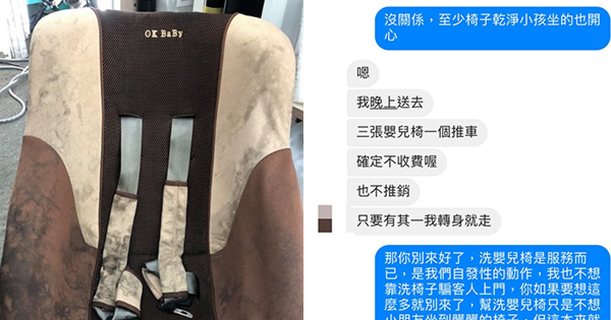 佛老闆洗車「免費幫洗嬰兒椅」 遇奧客媽送3張椅嗆:一有推銷就走人