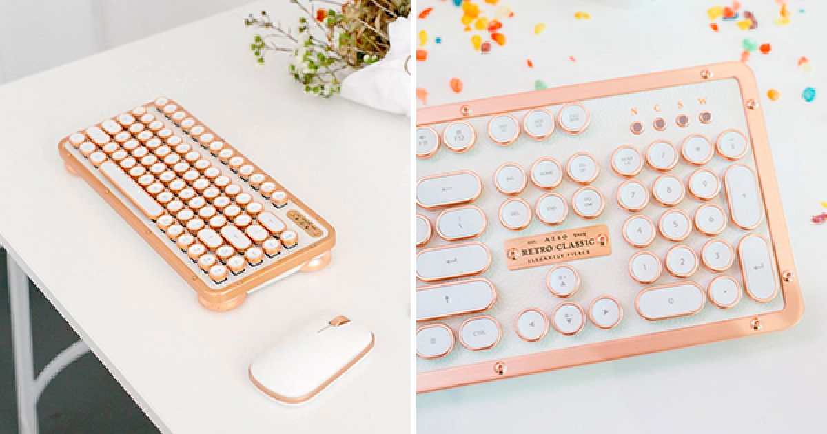 辦公室放「復古玫瑰金牛皮鍵盤」美哭了~ 打字聲喀啦喀啦聽起來就是爽❤
