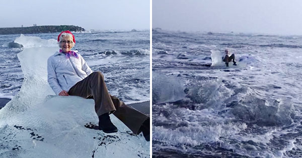 外國阿嬤遊冰島興奮坐上「冰塊王座」 然後…她就被海水沖走了
