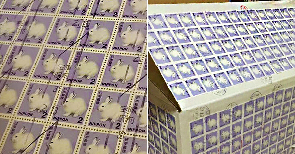 幫郵局員工QQ!包裹上「郵票貼好貼滿」超壯觀 一打開還有「老大」蹦出來