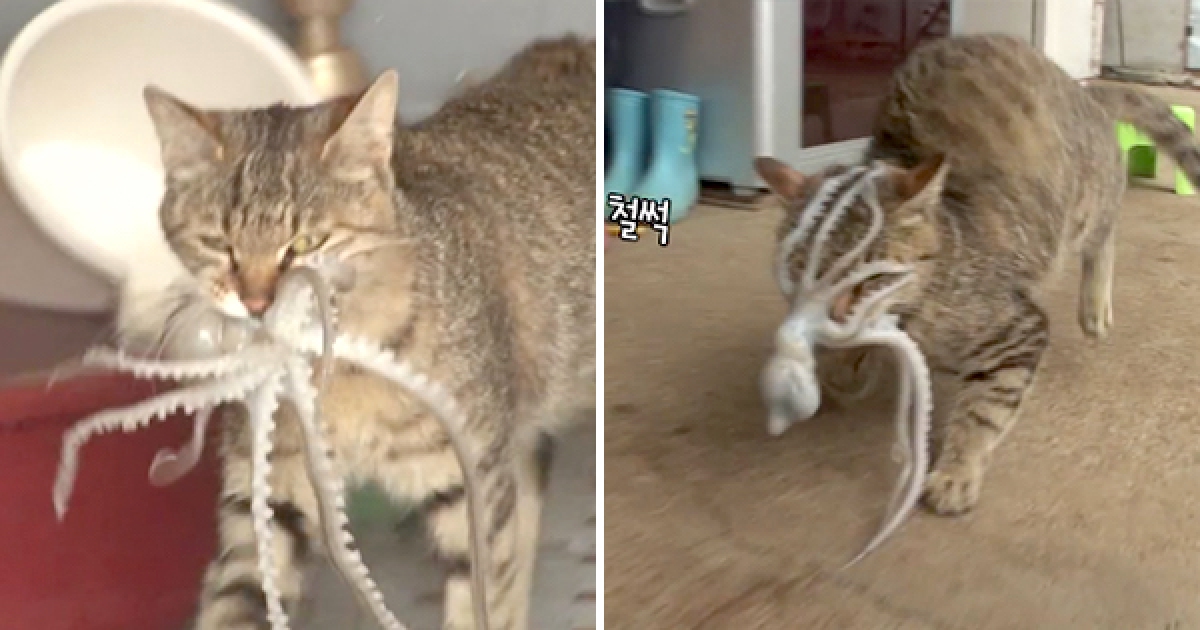 吃貨貓咪「偷生章魚」被反撲 臉扒緊緊嚇到「高速倒退嚕」
