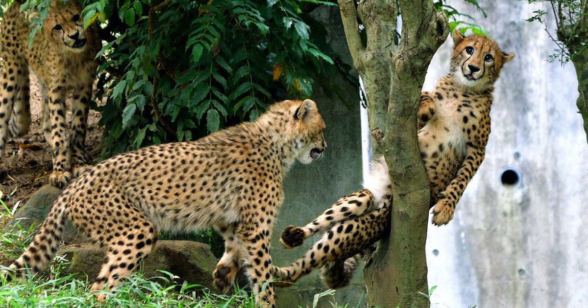 大貓卡樹一臉「懷疑豹生」 被同伴「趁機偷戳」表情瞬間母湯:那裡不行R~