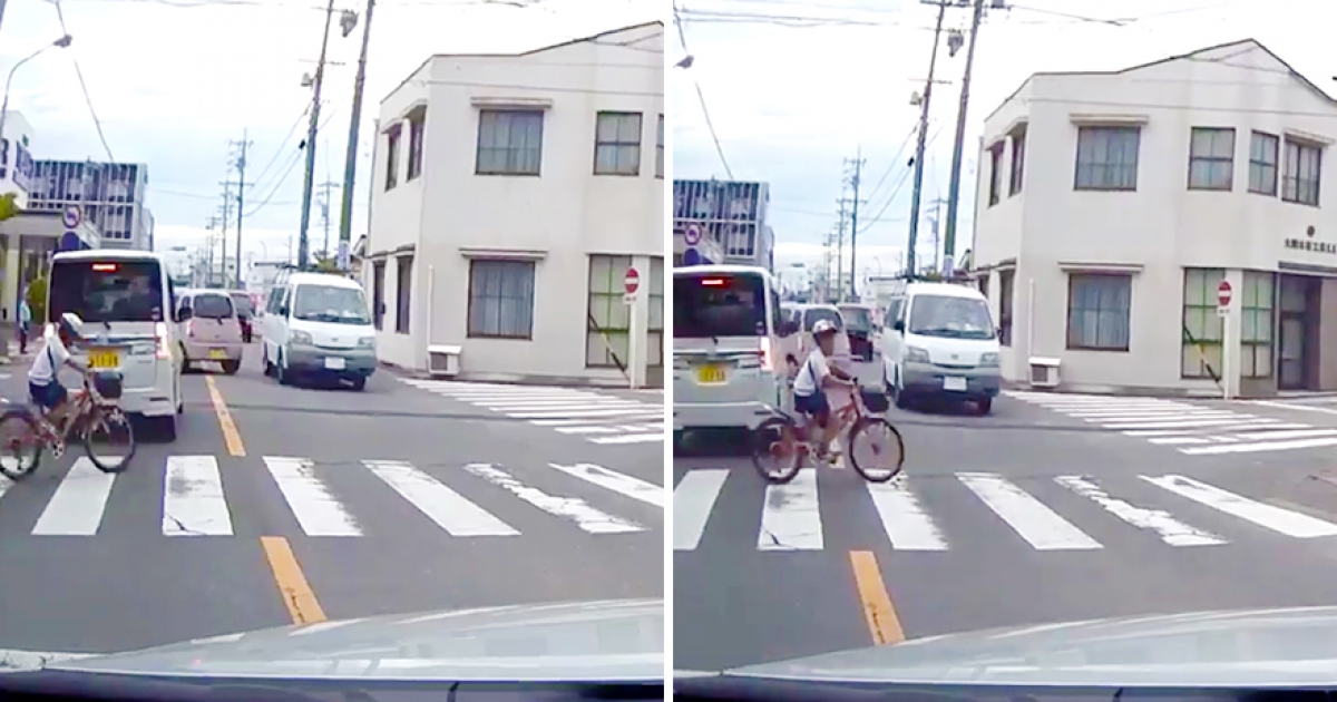 小學生騎車過馬路「對向車看不見」 機智駕駛「轉方向盤」及時救了他