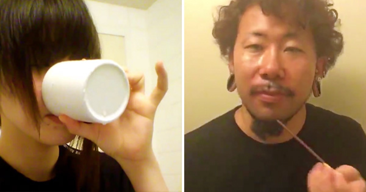 日男女示範「穿唇環喝水吃Pocky」 網友看到覺得痛:被嚇到了