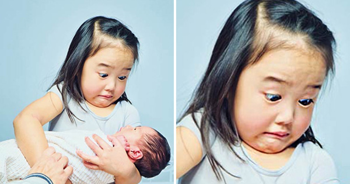妹妹剛出生…小女孩第一次抱覺得傻眼 表情很母湯:好重