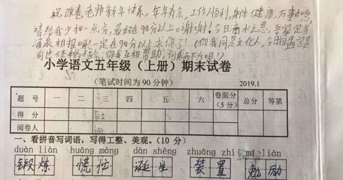 「相遇是前世修來的福氣」 小學生居然用這招求老師給90分以上