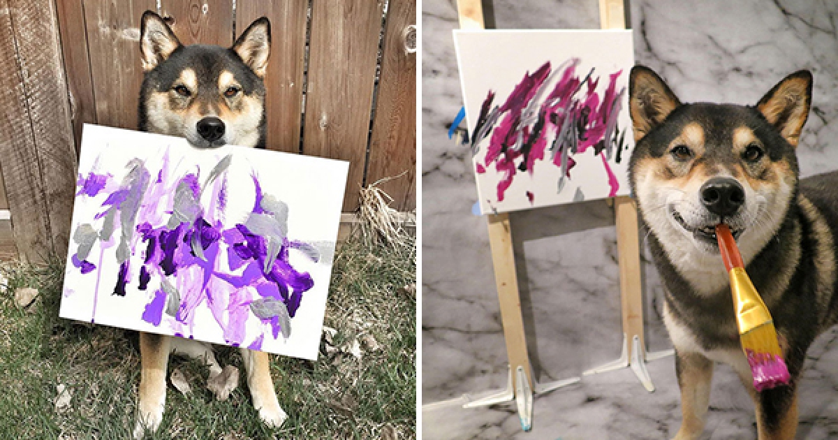 汪界畢卡索! 黑柴「學畫畫」學出興趣 大作為主人賺進15萬元
