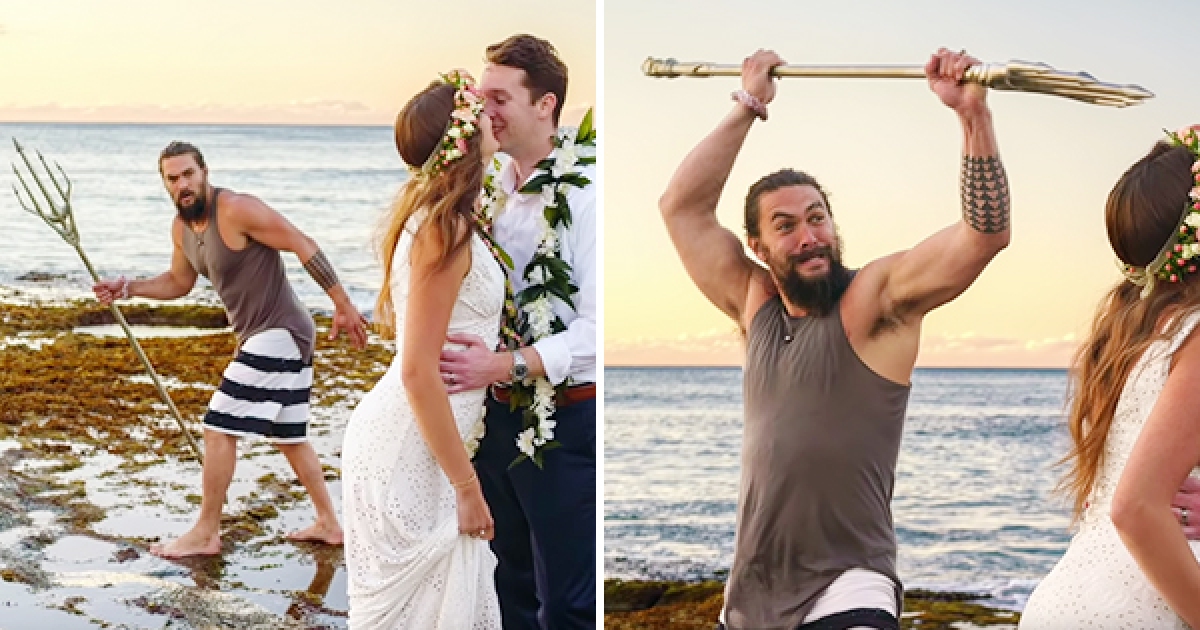 「水行俠」傑森摩莫亞亂入別人的婚禮 爆笑拿出三叉戟鬧個不停
