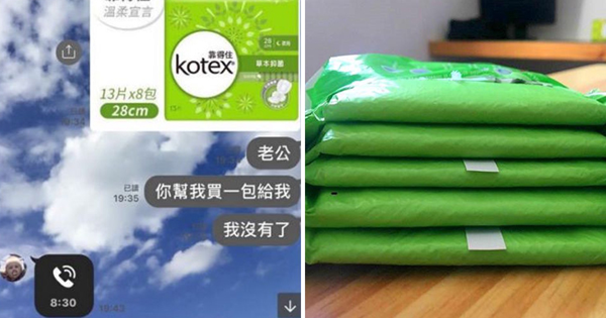 買衛生棉盧了8分半! 男友堅持「這樣不MAN」 女友冷回一句他乖乖抱回家