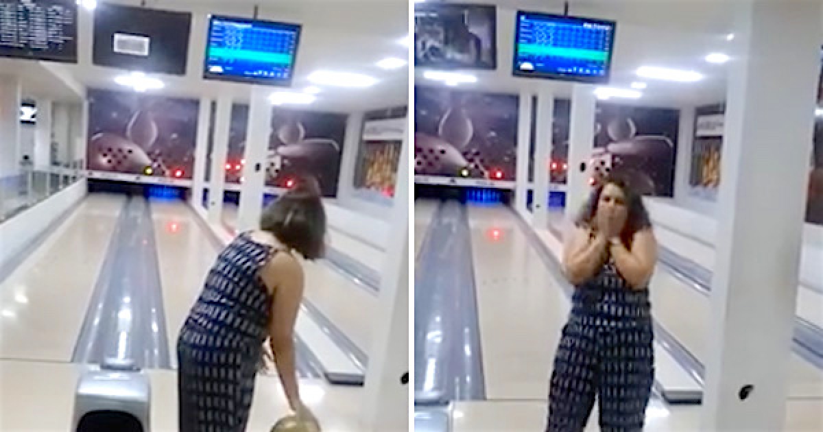 原來我天生神力? 女子玩保齡球失手「往上爆衝」瞬間GG了