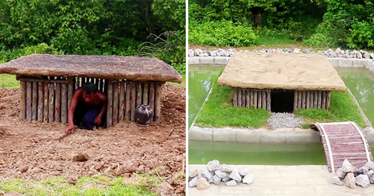柬埔寨神人用最原始方法蓋房子 2個星期內還加碼蓋「護城河」游泳池