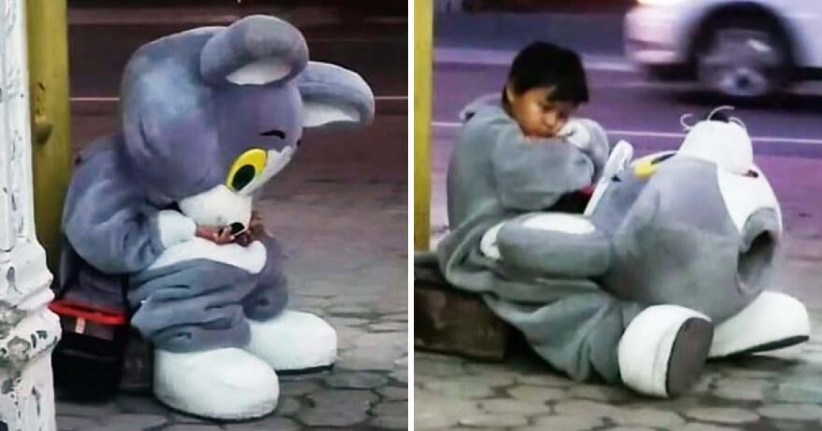 路邊玩偶裝脫掉…竟是9歲童! 「熱天走10km」賺錢不喊苦:要賺錢買飯飯