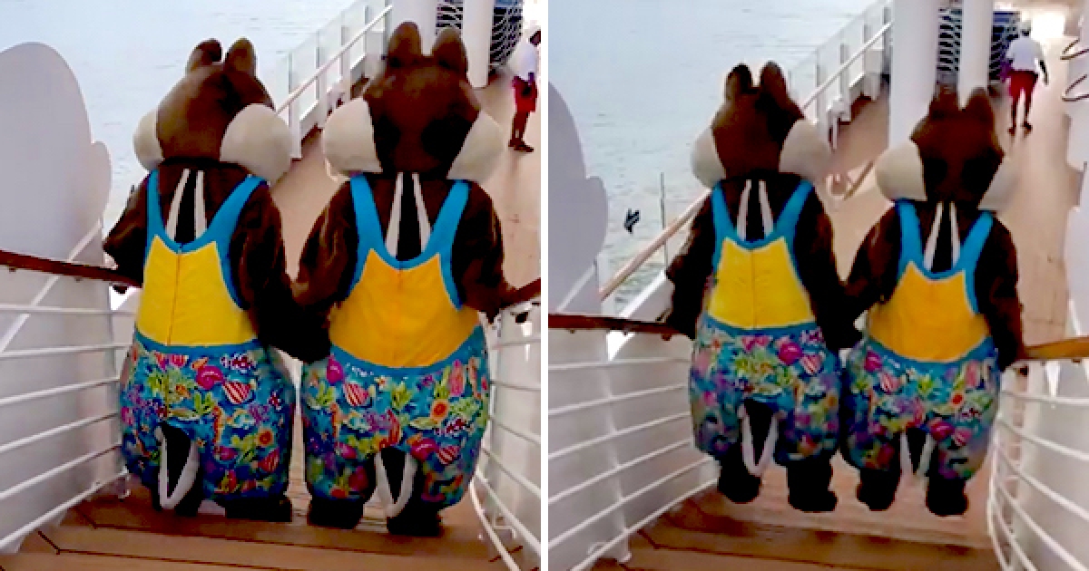 奇奇蒂蒂下樓梯牽緊緊 裝彈簧「同步起跳」Q彈姿勢萌爆