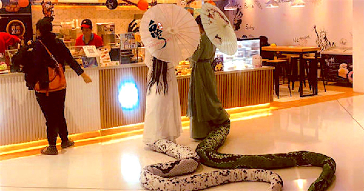 白蛇青蛇甩「200cm蛇尾」買飲料 一轉頭網好驚艷:超正妹