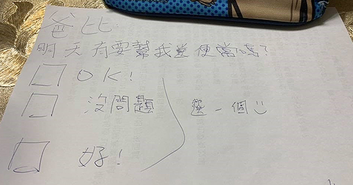 兒子根本強迫中獎 留字條給爸爸「答案3選1」超有心機