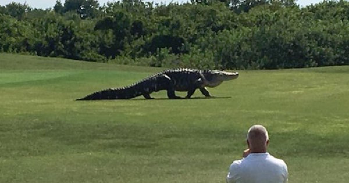 史前怪獸現身? 「4米長巨鱷」現身高爾夫球場 無視人類悠哉散步