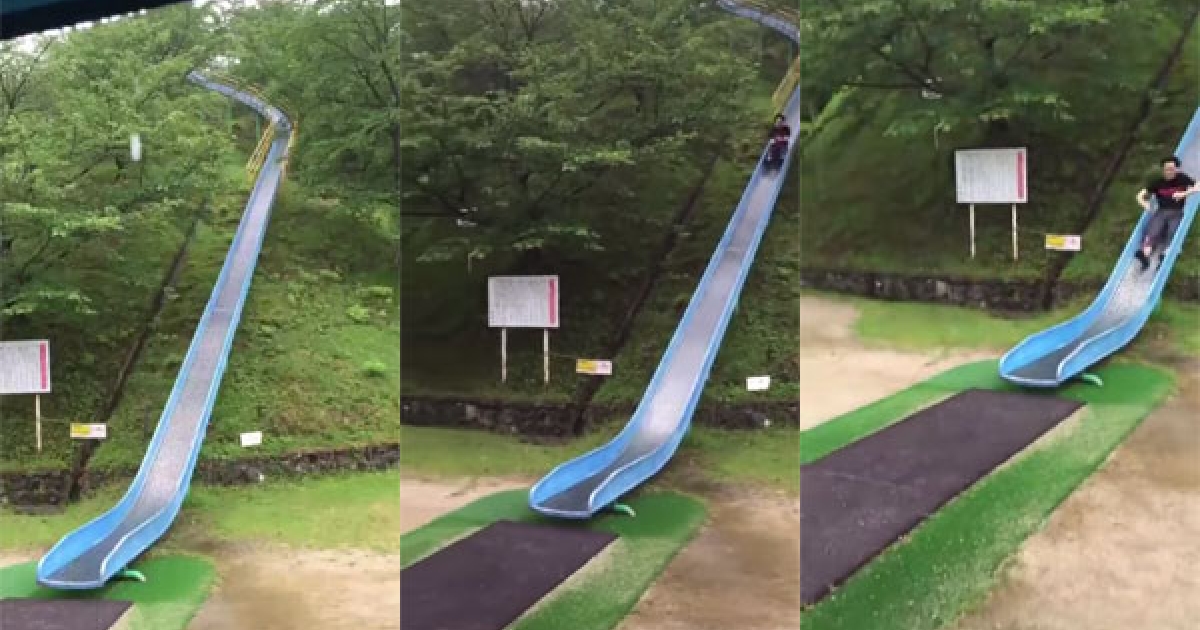 試溜「遠到看不見起點」的超長溜滑梯 男子屁股差點直接燒起來了