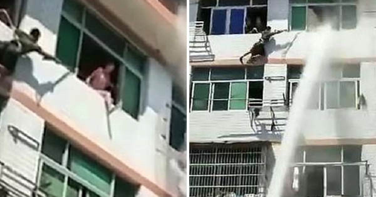 跳樓女苦勸不回頭 消防人員「水柱直噴4樓」一發把她轟進屋